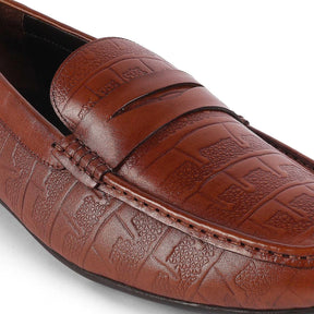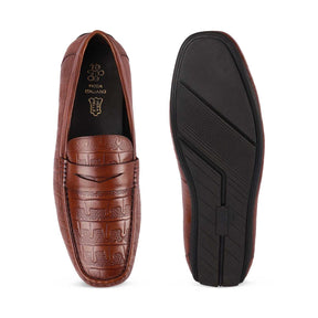 Tresmode Miland Tan Men's Leather Penny Driving Loafers