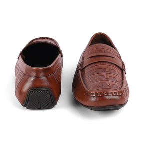 Get your formal and semi-casual looks on point with our Miland tan men’s penny loafers. With a premium textured pattern, this classic pair will be your favourite soon. Carefully crafted in premium genuine leather, these penny loafer shoes have a TPR sole for added comfort. Enhance your Friday look at work by pairing these shoes with a semi-casual outfit.