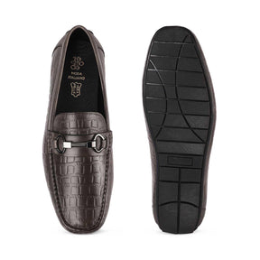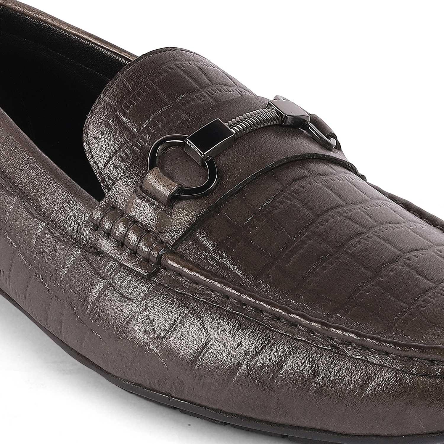 Elevate your fashion game with our Miluck grey men's leather driving loafers. With a trend-setter croc embossed pattern and a metallic buckle on the upper, these premium genuine leather driving loafer shoes are ideal for a dashing look. Make a great style investment by adding these TPR sole loafers to your collection. Get ready to take every step confidently by pairing your outfit with these loafer shoes for your next work meeting.