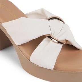 Tresmode Molin White Women's Dress Block Heel Sandals