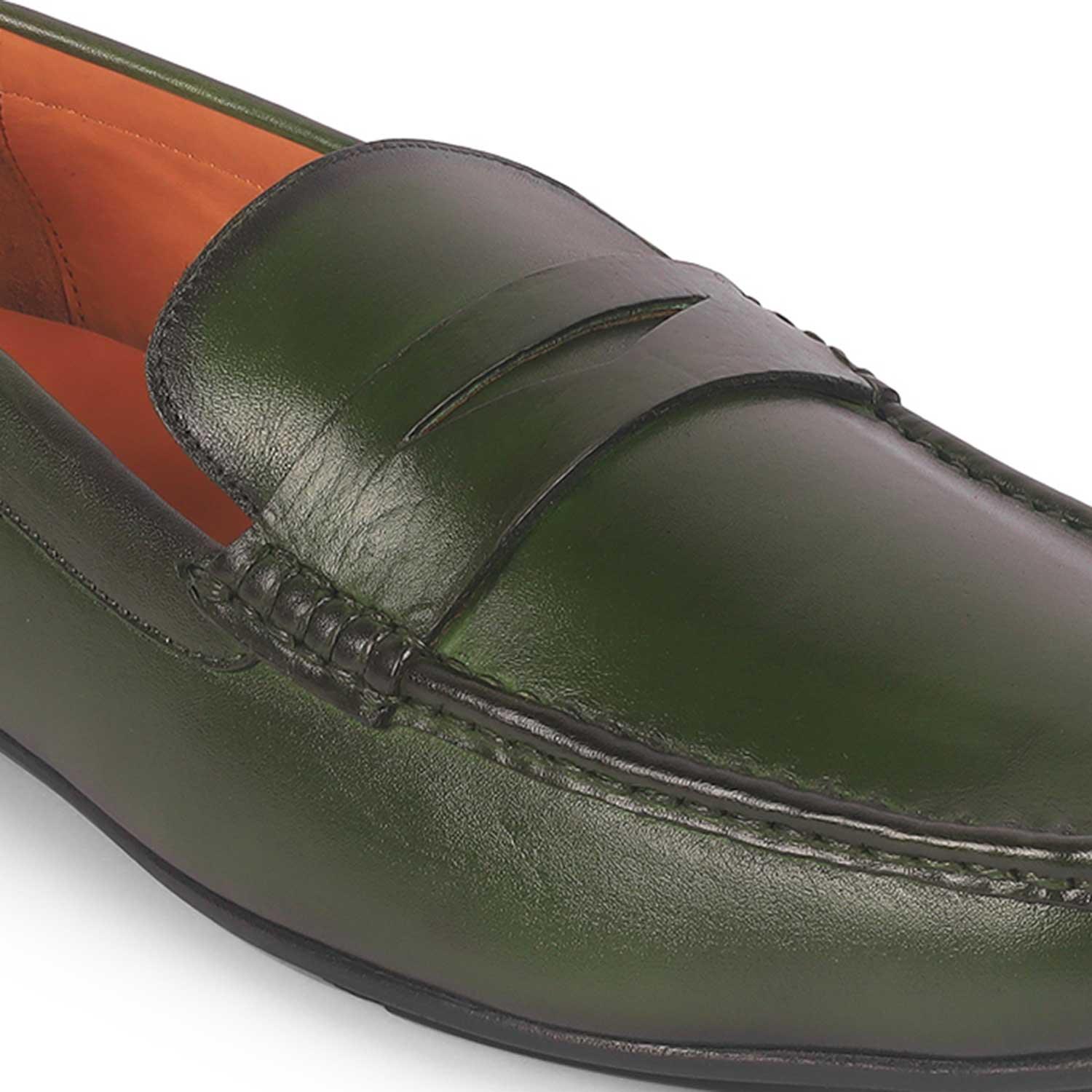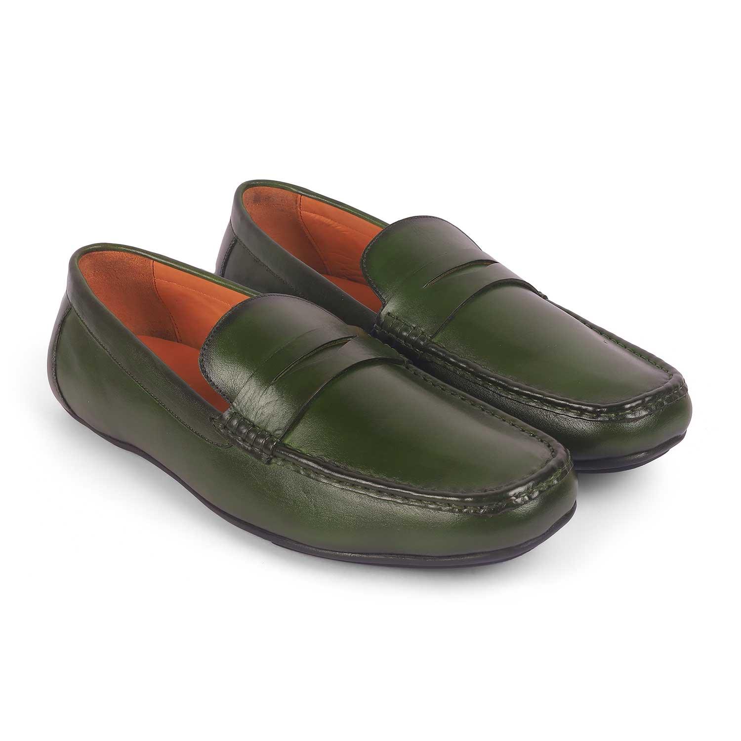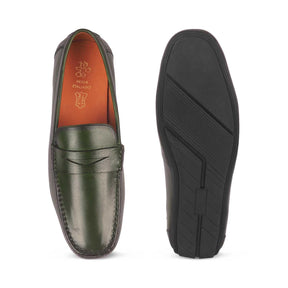 Tresmode Monto Green Men's Leather Penny Driving Loafers