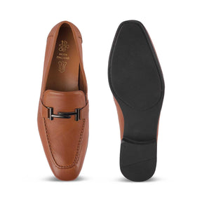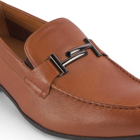 Elevate your formal ensemble with our Nelson tan men’s leather loafers. Crafted in premium genuine leather with a metallic buckle belt on the upper, these men's loafers shoes are both sophisticated and comfortable. This pair has a TPR sole for utmost comfort and to offer a good grip. Look dapper at your next work meeting by pairing these loafer shoes with a formal outfit.