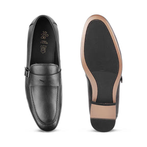 Put your formal look together with our Neno black men’s leather loafers by your side. Modern and comfortable are the two words that define these loafer shoes. Crafted in premium genuine leather and featuring a silver buckle on the side, these shoes with a TPR sole are the ultimate must-haves. Enhance your sense of fashion by teaming these men’s shoes with your formal outfit.