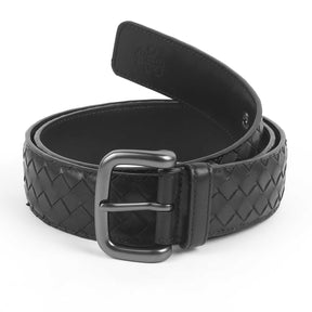 Transform your sense of style with our Newton black men's leather belt. Created from premium textured leather, this belt has a criss-cross patterned texture and a top-notch buckle. Textured leather gives a modern twist to the classic style of leather belt for men. This belt will be your go-to for semi-casual and formal looks. Stand out from the crowd at an important formal event by pairing your outfit with this belt and a sophisticated gold watch.