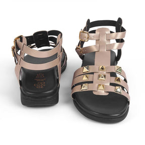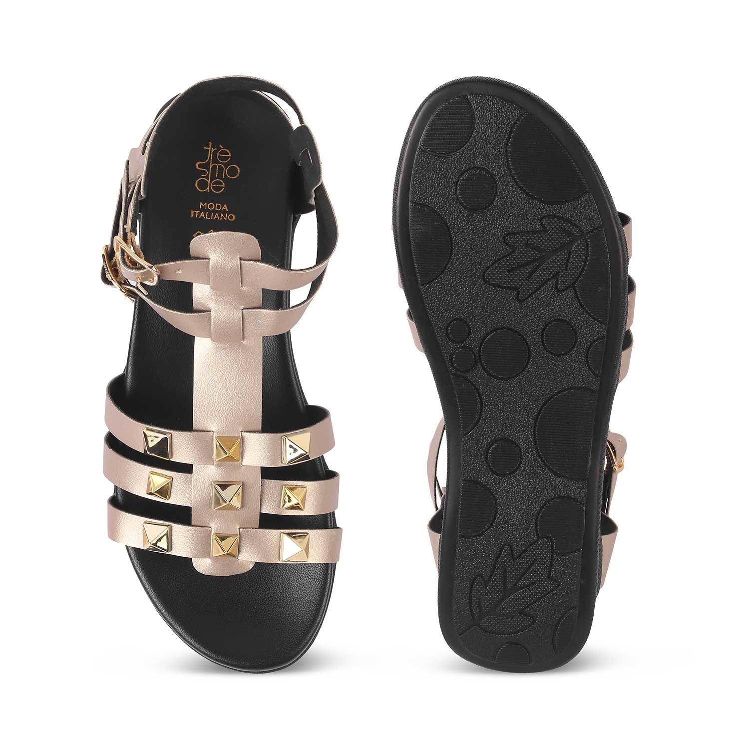 Make a great style investment by getting yourself our Nia champagne platform flats for women. With a 1.5-inch platform height, classic studs, and double adjustable belt at the back for a great fit, this pair is a must-have for a weekend outing. Take your fashion game to a whole new level by adding this vegan-friendly pair to your collection. These TPR sole women’s flats can be paired with a cute dress for a day out.