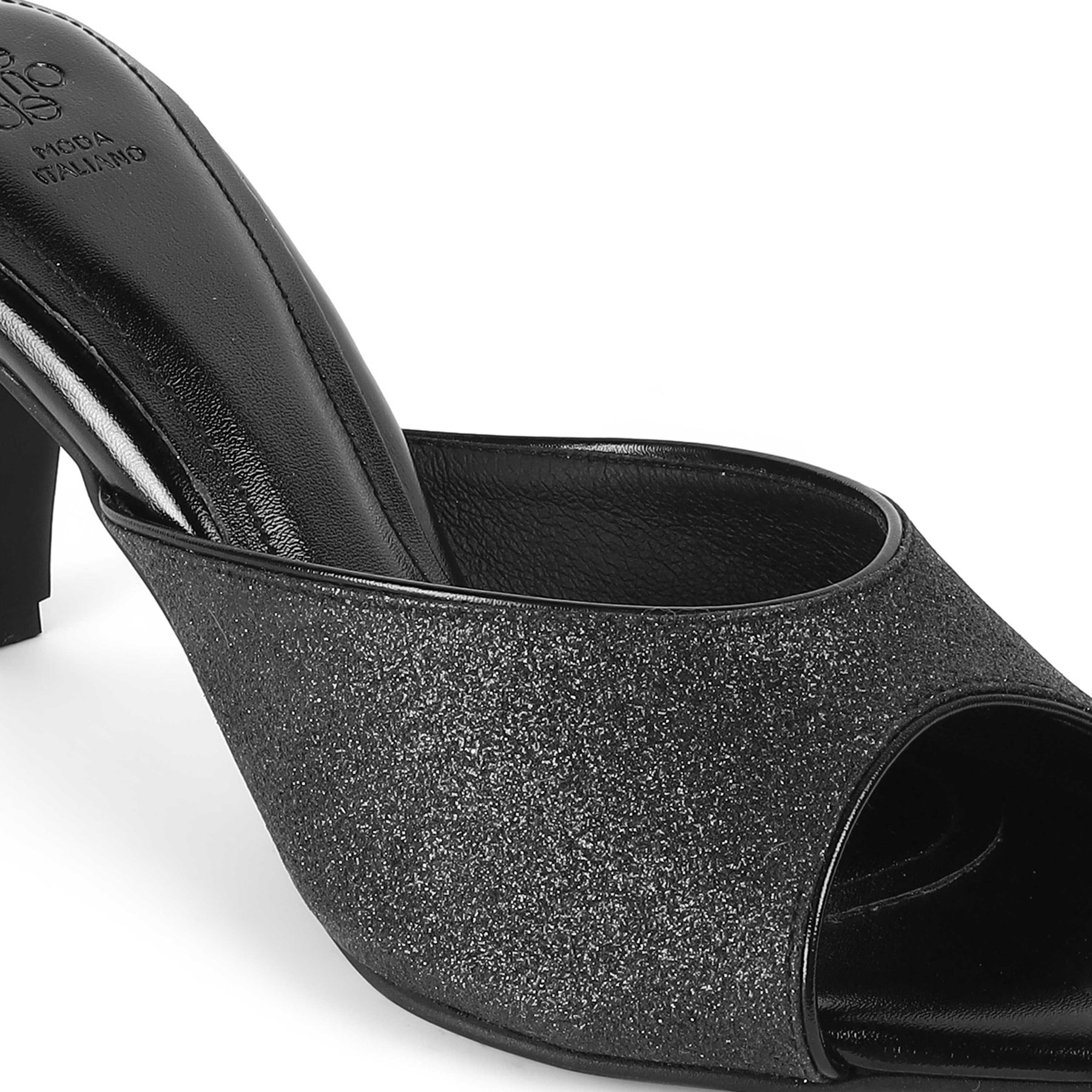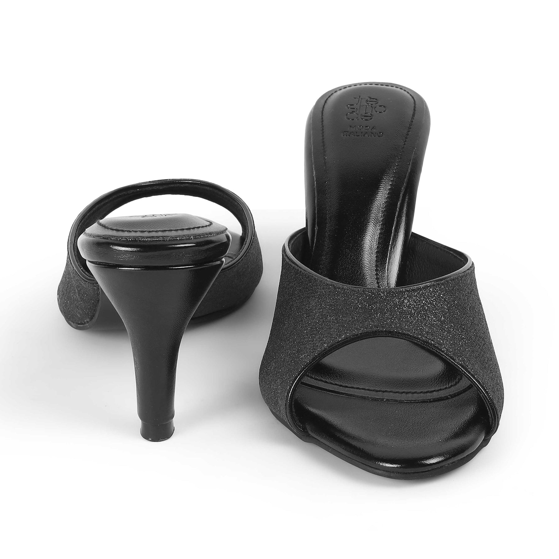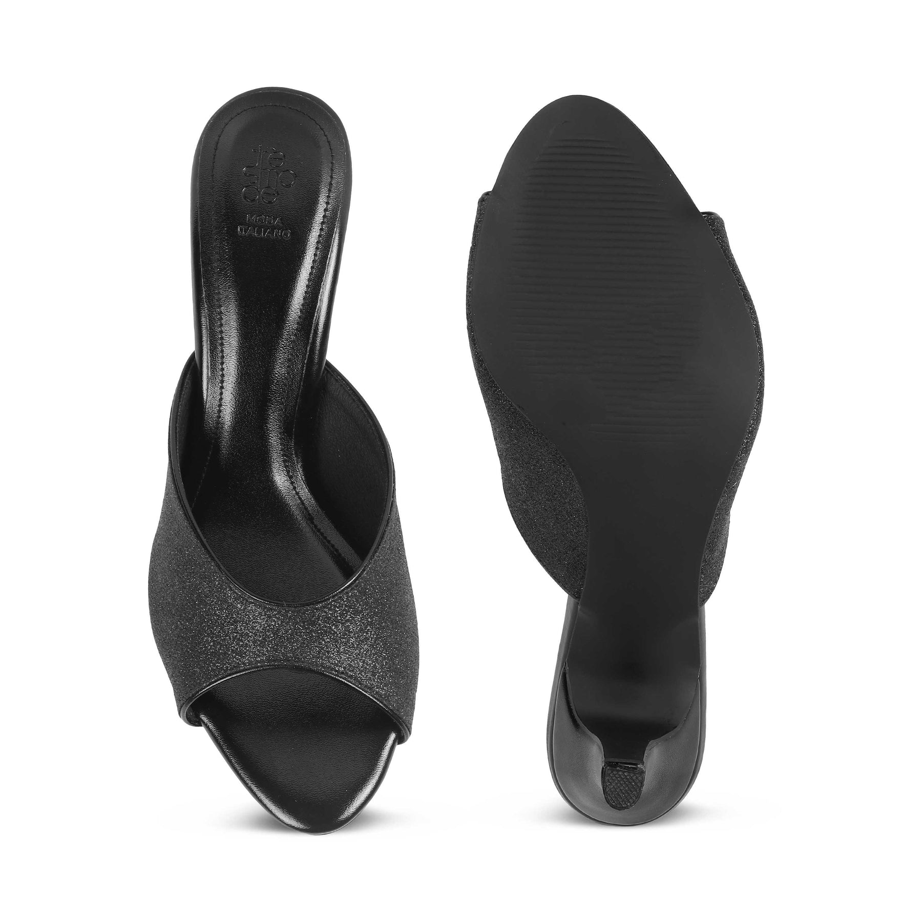 This festive season, glam it up by adding our Pari black heel sandals to your collection! With a 3-inch heel height and a shimmer upper, this charming pair strikes the perfect balance between fashion and practicality. Whether it is a party or a festive function, transition effortlessly with these vegan-friendly women’s heels with a TPR sole by your side. Style these women’s sandals with a traditional dress for a function.