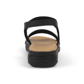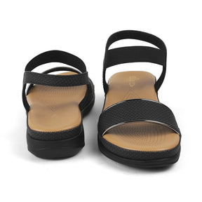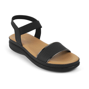 Ideal for your everyday looks, our Reny black platform flats for women are simple yet stylish. With a 2.5-cm platform height, a classic design, and an elastic belt for a good fit, these flats for women will make a great addition to your daily collection. This pair has been created from premium vegan-friendly leather and has a TPR sole for added comfort. Get your casual look on point by pairing these flats with your daily outfit.