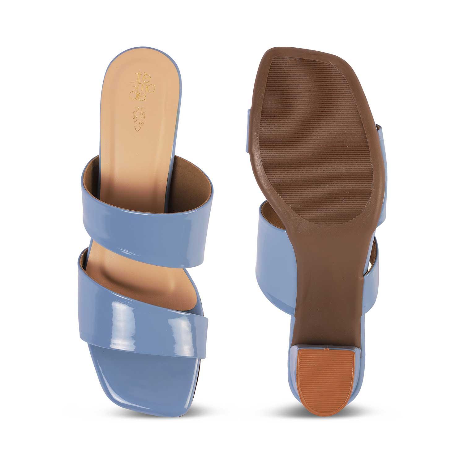 Let your style do the talking with our Sania blue block heels for women by your side! With a glossy-finish, 2.5-inch sturdy heel and a chic design, you can’t go wrong with this contemproray pair of vegan-friendly heel sandals. This pair has a TPR sole for added comfort. Look and feel gorgeous by styling these women’s sandals with a dress for a party.