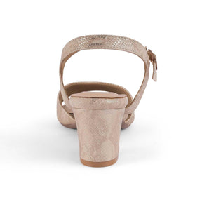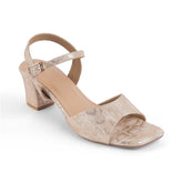 Our Sanrep TMS-5 gold women’s sandals are modern, chic, and comfortable. With a contemporary croc-patterned texture, a 2.5-inch sturdy block heel, and an adjustable belt for a great fit, these sandals are all you need for that perfect party look! These vegan-friendly sandals for women have a TPR sole to ensure you have a good grip with every step you take. Enhance your entire look by pairing your dress with these sandals for a party.