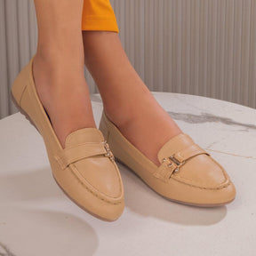 Upgrade your fashion game with our Sativa beige loafers for women. For those women who are looking for a fashionable pair of loafers without compromising on comfort, this pair will be their go-to style. Enhance your outfit of the day by styling it with these loafers. Look effortlessly chic by pairing these shoes with a stylish dress.