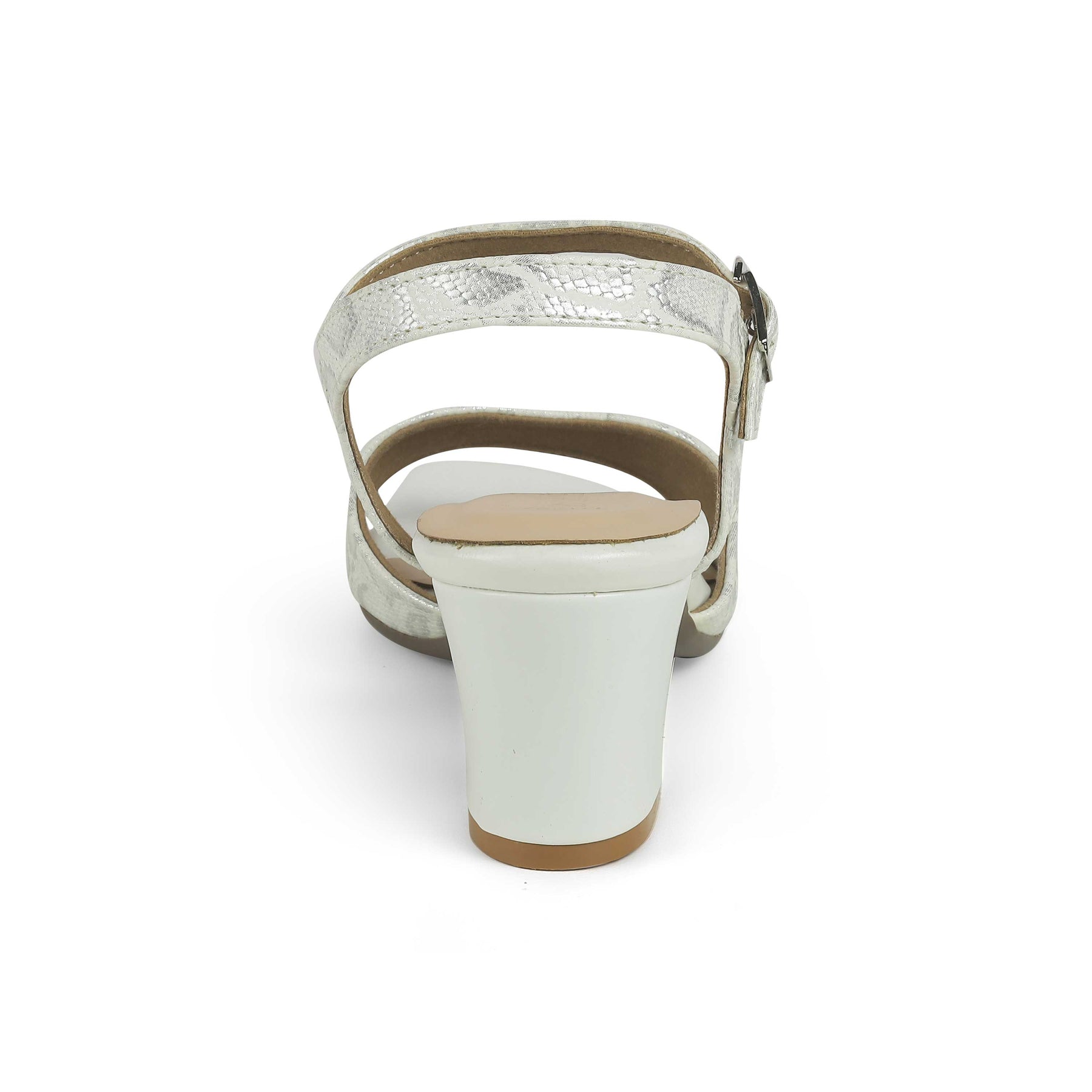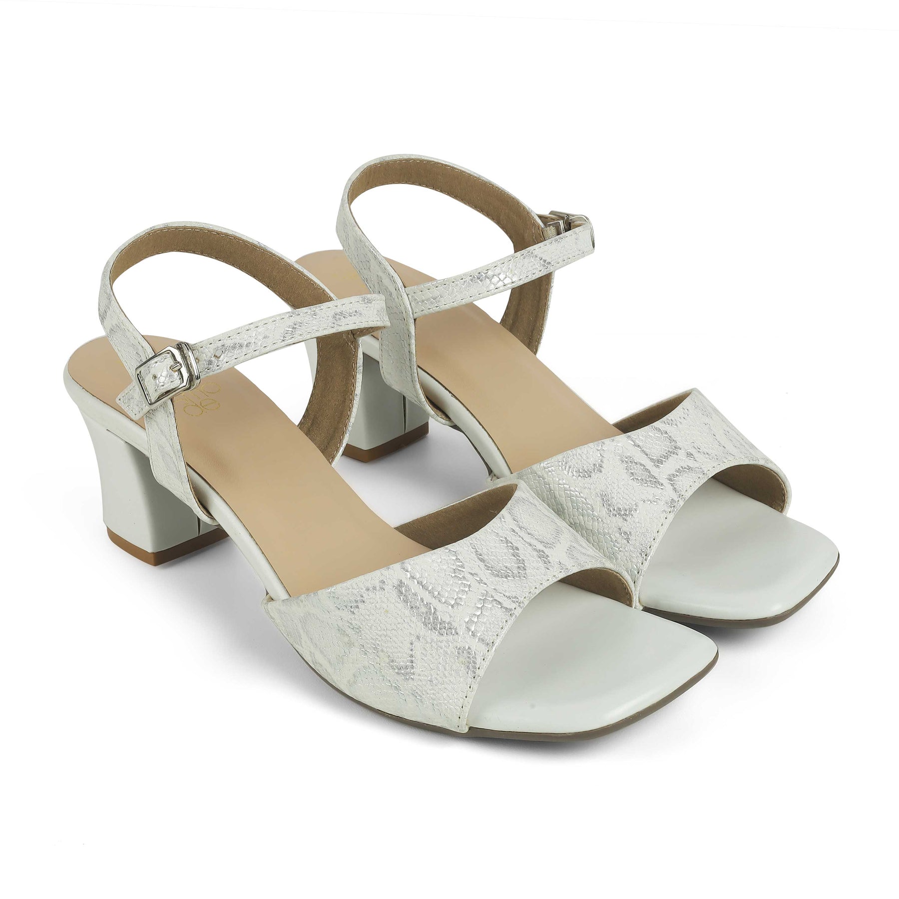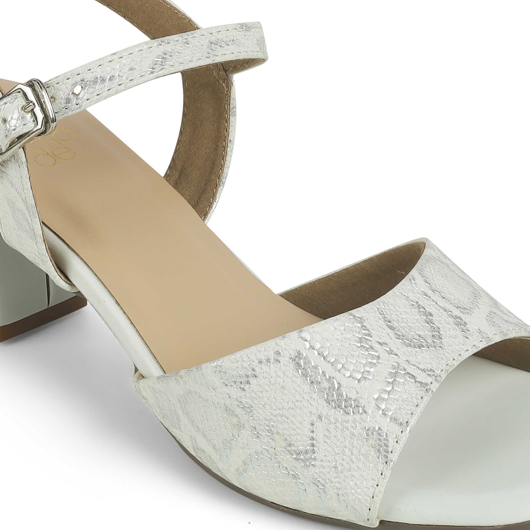 Our Sanrep TMS-5 silver sandals for women are modern, chic, and comfortable. With a contemporary croc-patterned texture, a 6.3-cm sturdy block heel, and an adjustable belt for a great fit, these sandals are all you need for that perfect party look! These vegan-friendly sandals for women have a TPR sole to ensure you have a good grip with every step you take. Enhance your entire look by pairing your dress with these sandals for a party.
