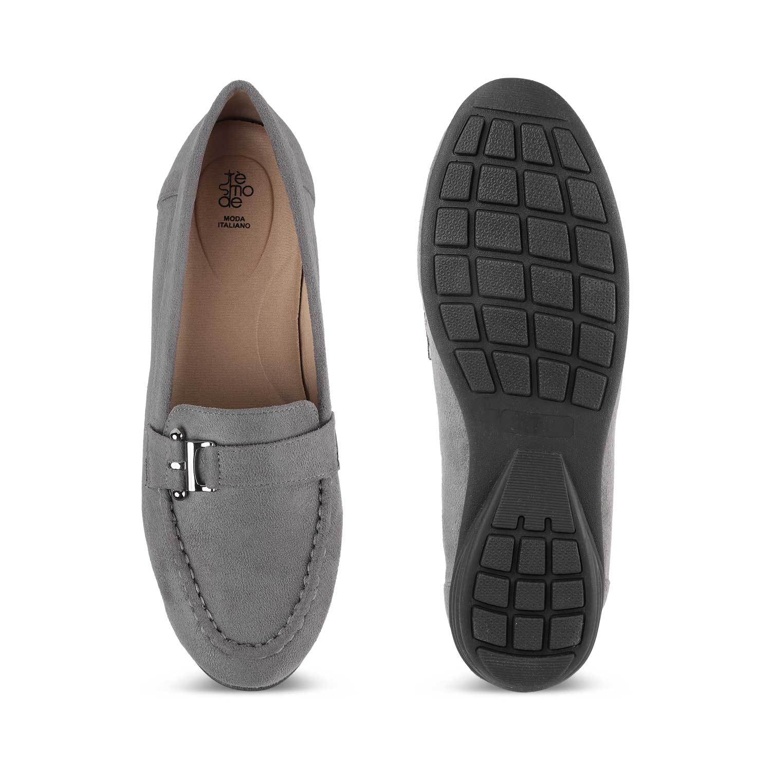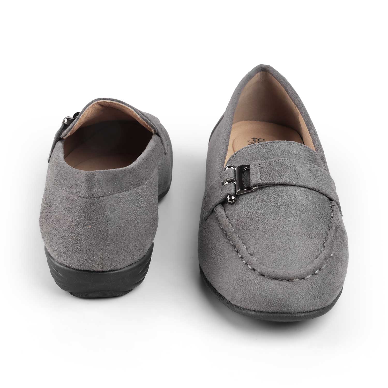 Redefine your everyday style game by getting yourself our Sli grey loafers for women. Created with care from premium suede leather and featuring a metallic buckle belt, these sophisticated Tresmode shoes will be your go-to. You can keep it simple by styling these loafers with a minimal outfit or opt for a vibrant outfit to stand out from the crowd.