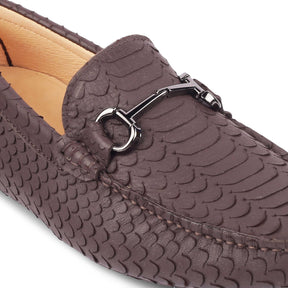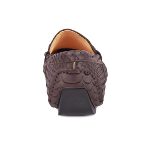 Level up your weekend getaway style with our Sofi brown leather driving loafers for men. With a trending croc-embossed pattern and a metal buckle on the upper, these premium leather loafers are a go-to! These shoes have a comfortable TPR sole. Upgrade your collection by adding this versatile pair to your collection. For a semi-casual look or a getaway, team these loafers with your daily wear.