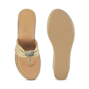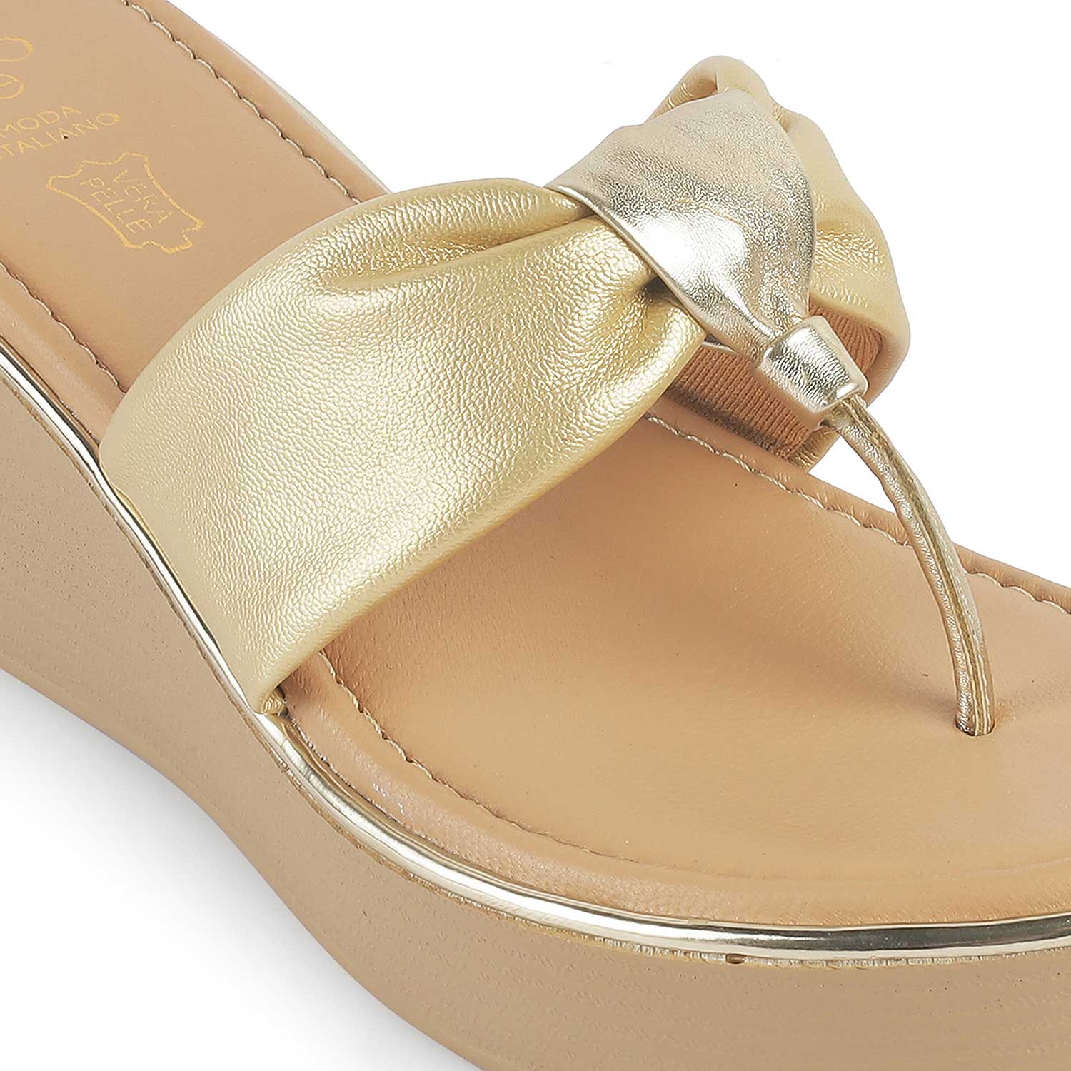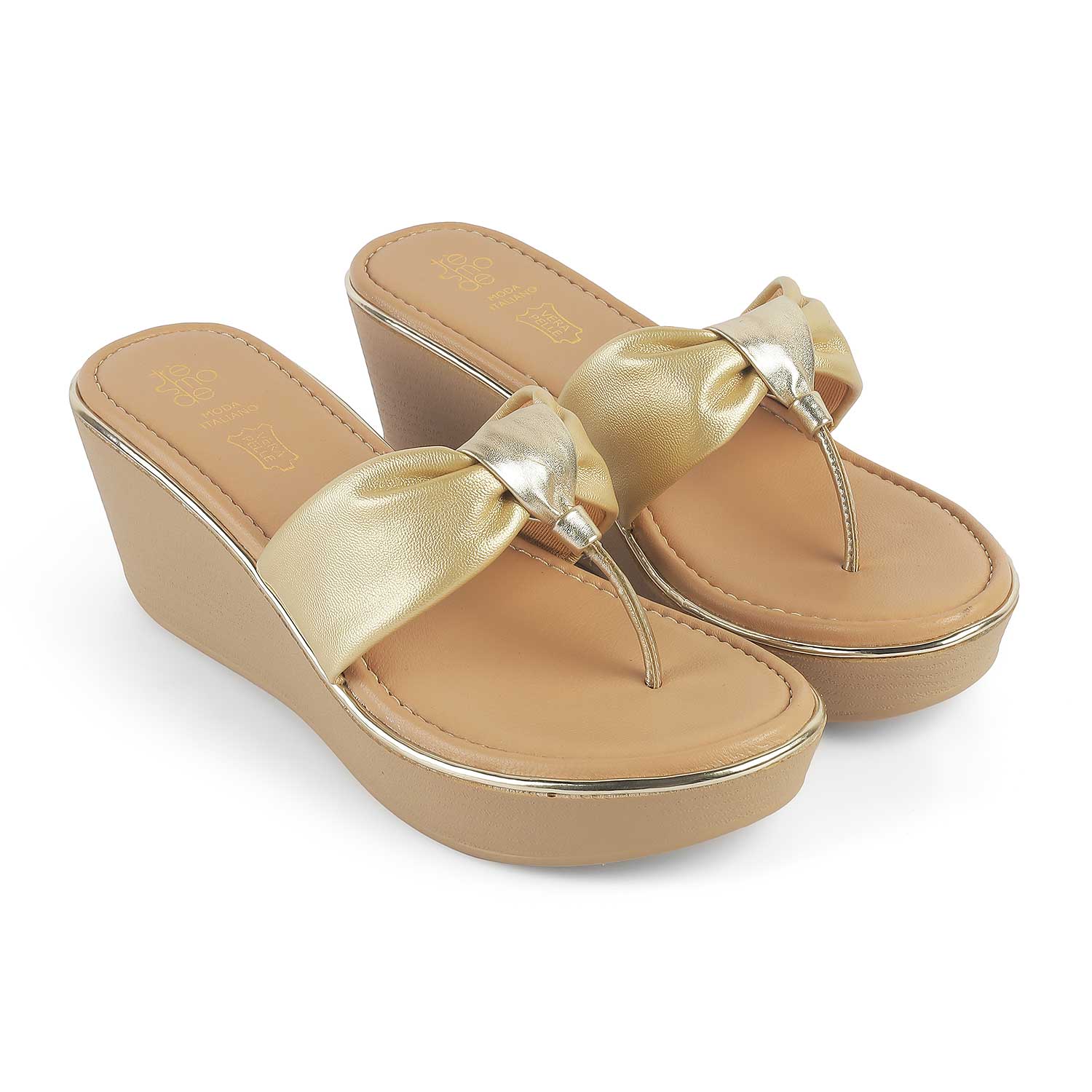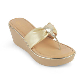 Tresmode Terifik Gold Women's Dress Wedge Sandals