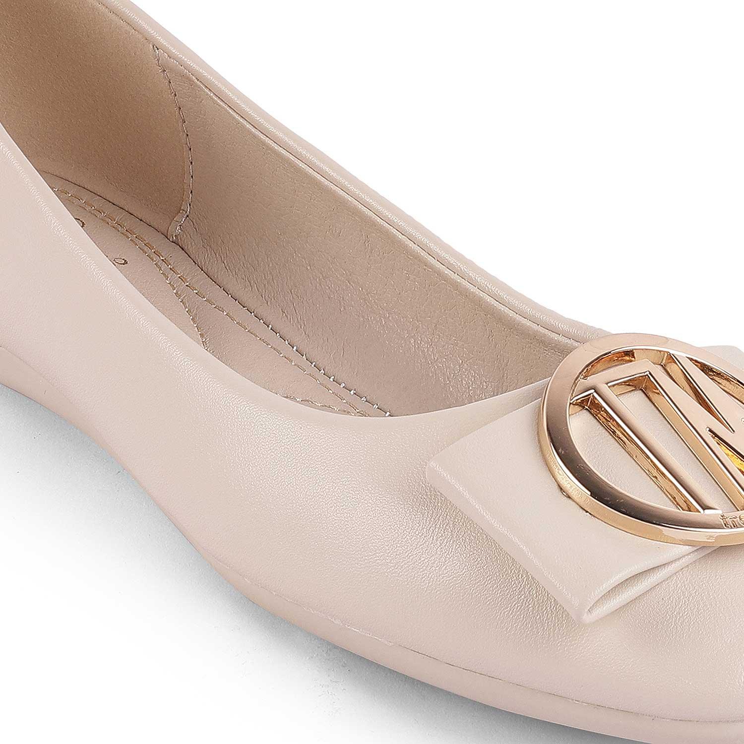Contemporary and comfortable are the two words that define our Trego white women’s ballerinas! With a golden metallic buckle, this versatile pair will become your favourite without a doubt. These ballerinas are created from premium vegan-friendly leather and have a TPR sole for utmost comfort. Look super chic by styling these ballerinas for women with a fashionable outfit.