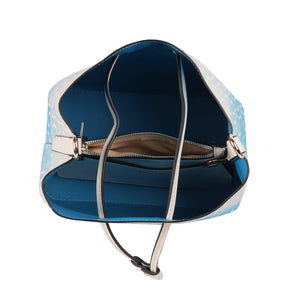 Introducing our Trip Blue women's handbag! With a classic ombre color palette, our logo, textured pattern, and a drawstring closure, this bag is a must-have for a stylish day-to-night look. This bag has been carefully crafted in premium vegan leather handbags India. It features two compartments and a detachable strap, making it convenient to carry your essentials. Perfect for casual outings, this bag is a great addition to your collection of ladies shoulder bags.
