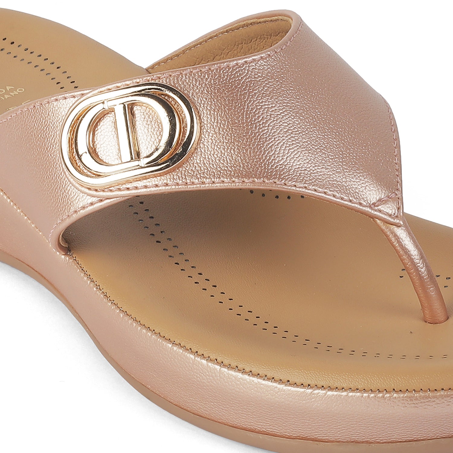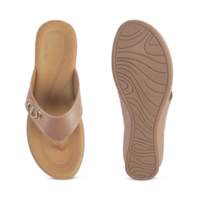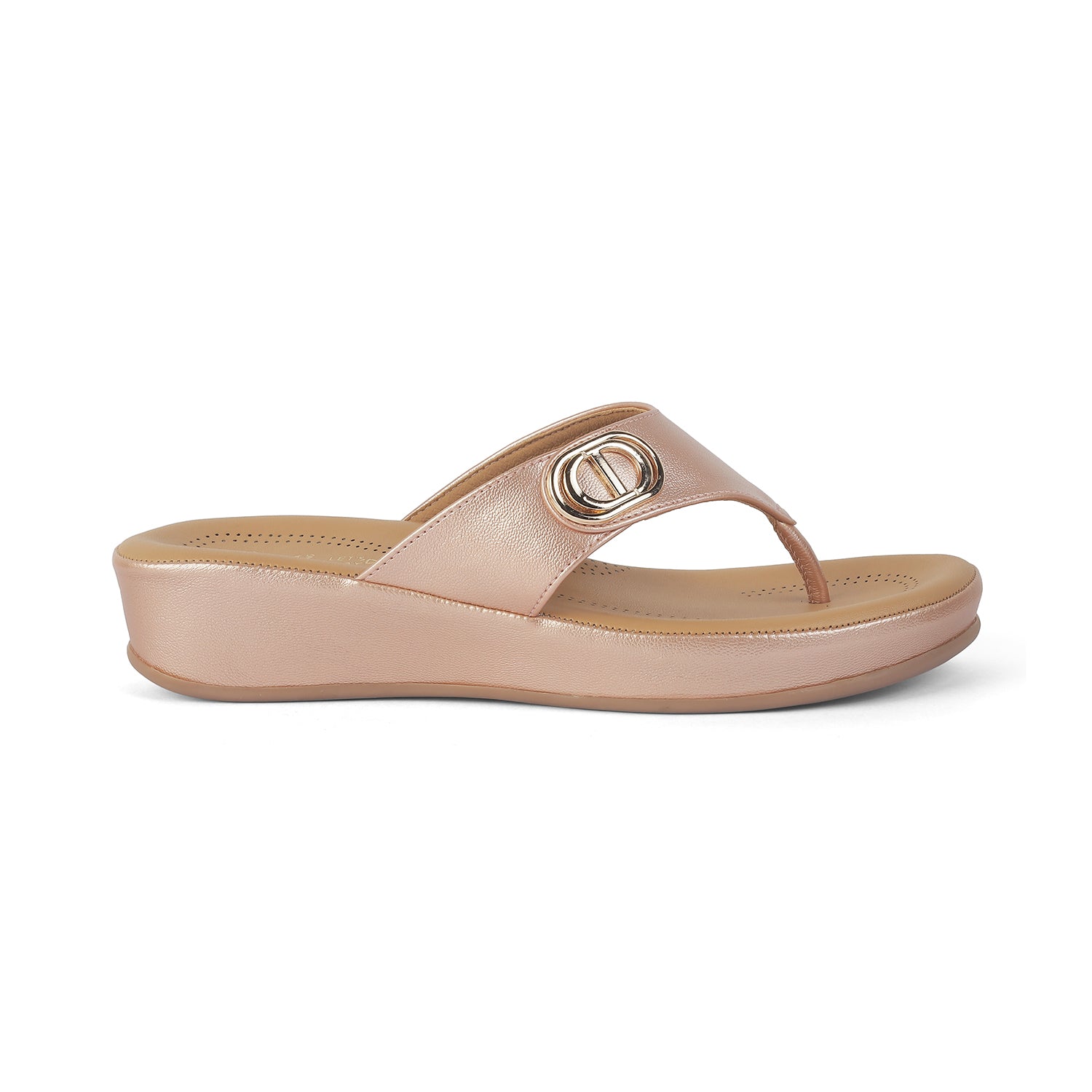 Our Vantaa champagne platform flats for women are known for blending fashion and functionality. With a 4-cm platform height and a metallic buckle on the upper, these TPR sole flats for women are ideal for your outings. This timeless pair is made from high-quality vegan leather. Walk gracefully by teaming your outfit with these platform flats.