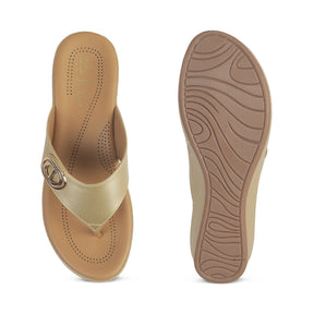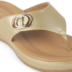 Tresmode Vantaa Gold Women's Dress Platform Flats