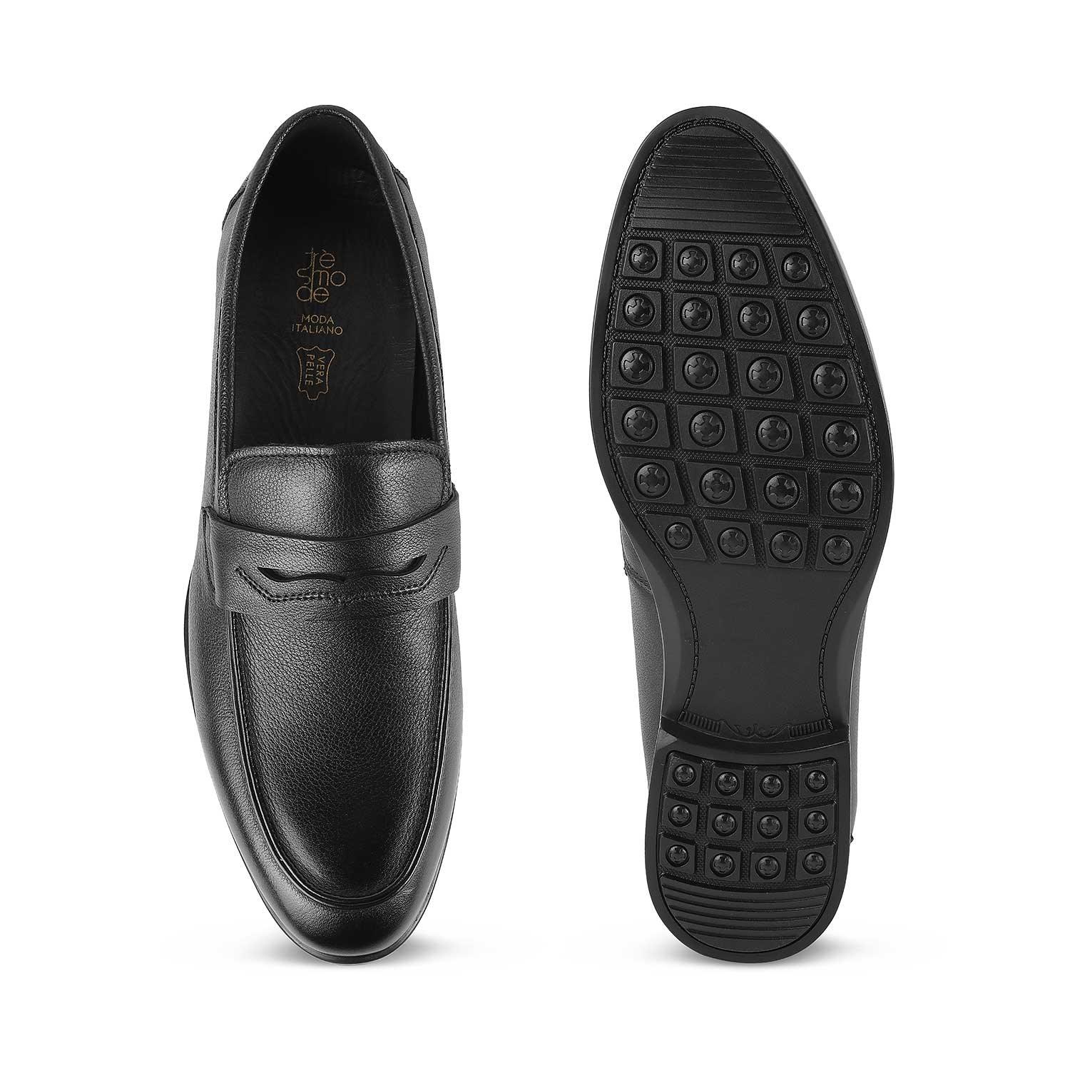 Tresmode Yesi Black Men's Leather Penny Loafers